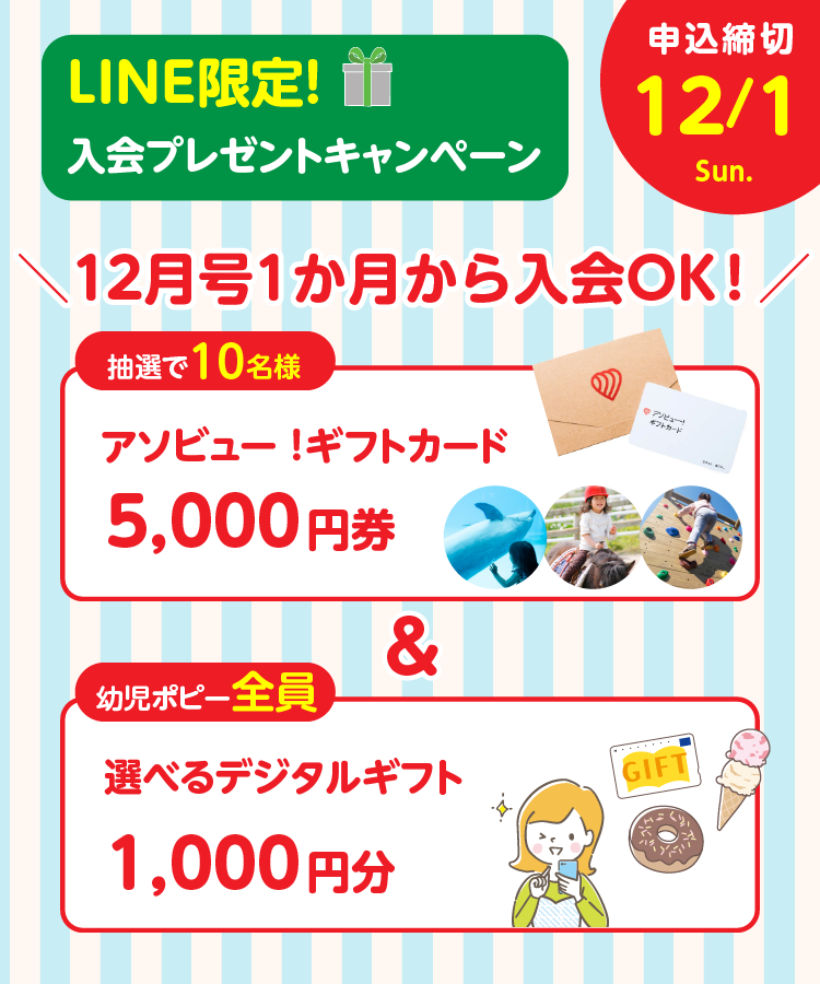 さらに‼幼児ポピーに入会するともれなく「選べるデジタルギフト1,000円分」をプレゼント🎁