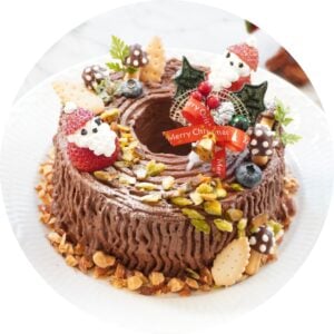 - ブルーベリー、砕いたピスタチオ、クッキー、チャービル、いちごサンタ(※)、きのこ菓子(※)など・・・各適宜