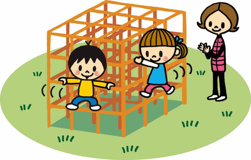 うちの子は大丈夫かしら?と思ったら、ジャングルジムで遊ばせてみましょう。這う、くぐるなどの3次元的な動きが自然とでき、頭をぶつけないよう常に枠の位置を意識しながらからだを動かす体験ができます。さらに、お友だちといっしょに遊ぶことができれば、登る速さを競ったり、「高おに」をしたりと、あたまもこころもからだも存分に使うことができます。ジャングルジム以外にも、外あそびは空間認知能力を育むチャンスにあふれています。