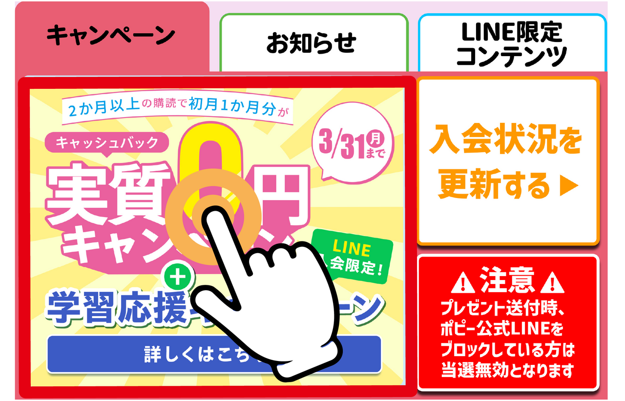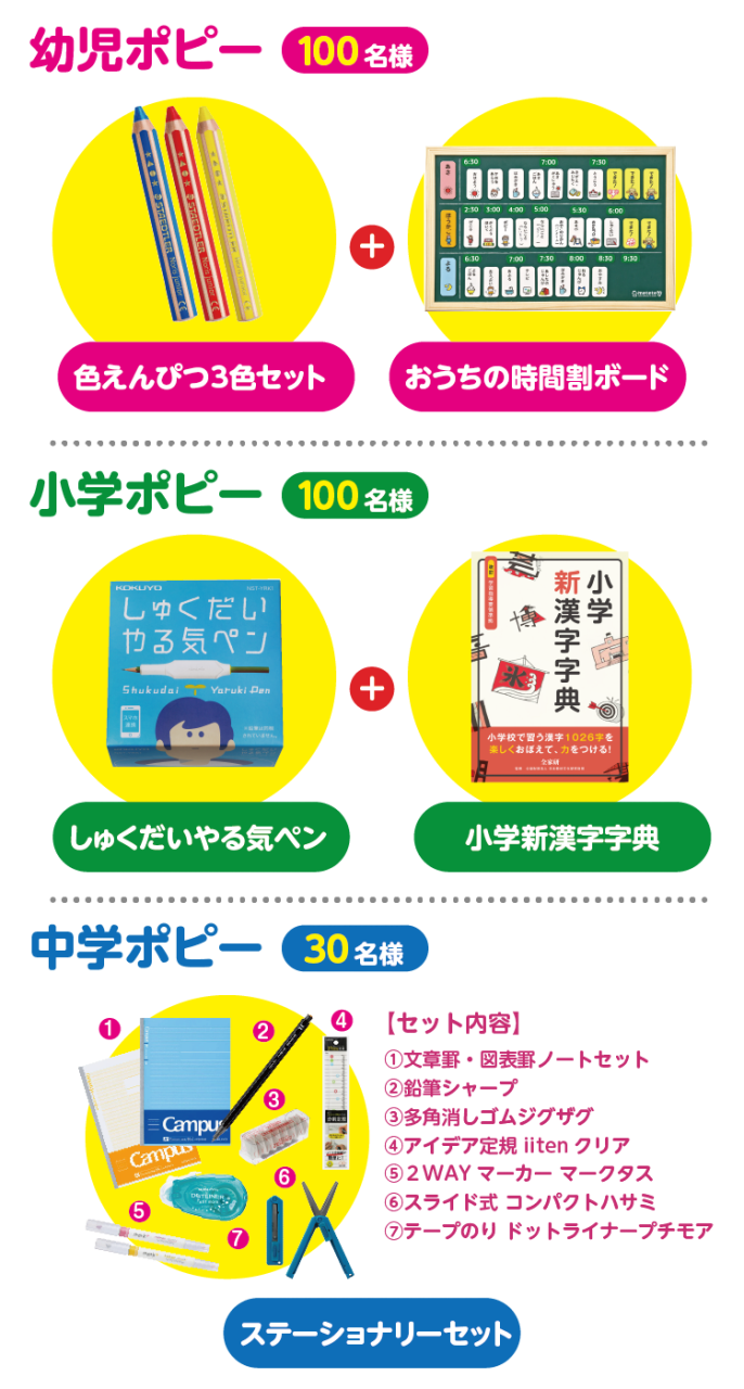 【対象教材】幼児ポピー/小学ポピー/中学ポピー ※新規入会に限る