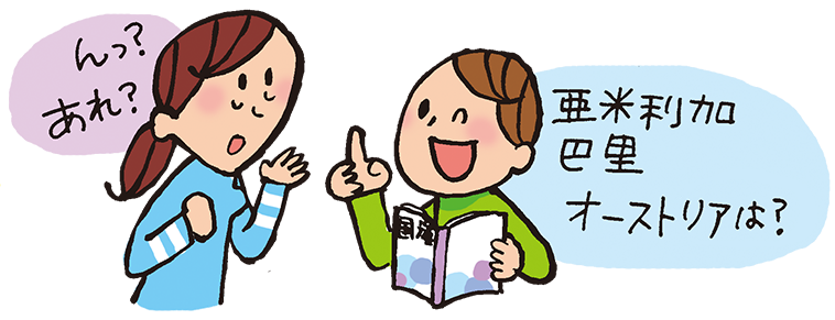 ・最近、息子は世界の国旗に興味を持ち始め、「亜米利加」「巴里」など世界の国や都市の名前を漢字で書くことに夢中になっています。先日息子から「オーストリアってどういう漢字を書くか分かる?」と難問を出されたときは、答えられませんでした...。(答えは「墺太利」)小学校では習わない漢字もありますが、興味を持ってくれたのは、うれしいです。先生や友達からも「すごい!」と言われ、漢字大好きになりました。(東京都/K・Kさん お子さんは6年生)