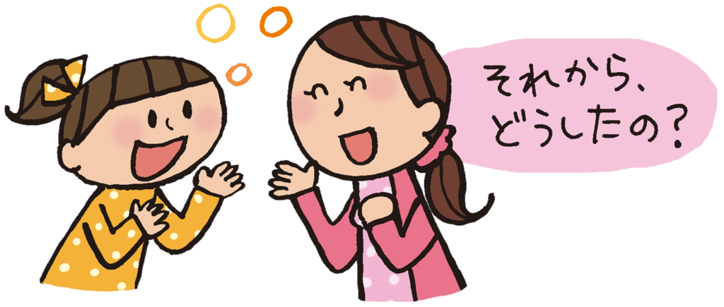 それは、「それから、どうしたの?」という言葉。この一言で、子どもは「もっと話してみよう」と気持ちがノッてきます。すると、会話がスムーズに続いていく...というわけです。