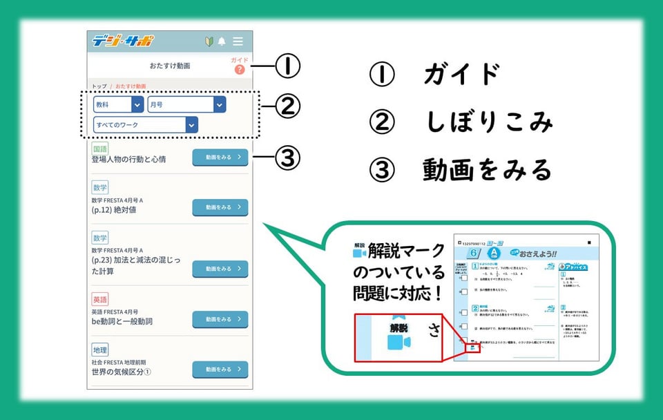 2025年度 スタートガイドプラス【中学ポピー】デジ・サポの使い方ページ