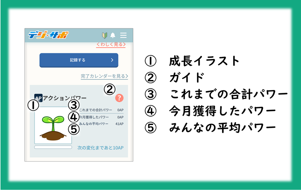 たまるAPの量は、記録する取り組みの種類によって変わります。