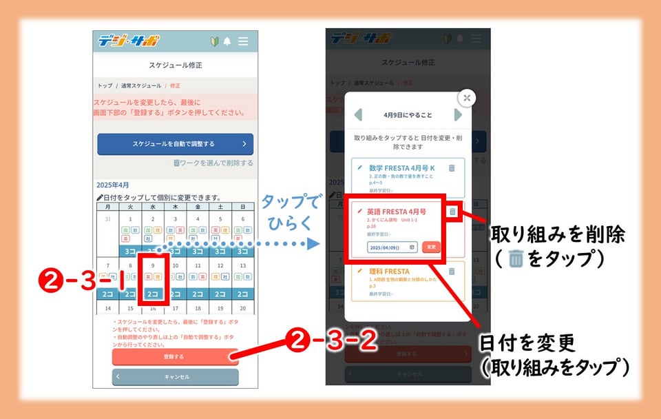 このときスケジュール修正は行わないため、改めてスケジュールを組み直してください。