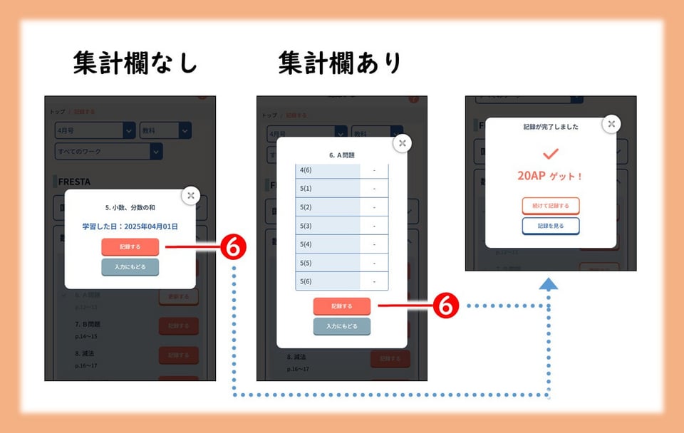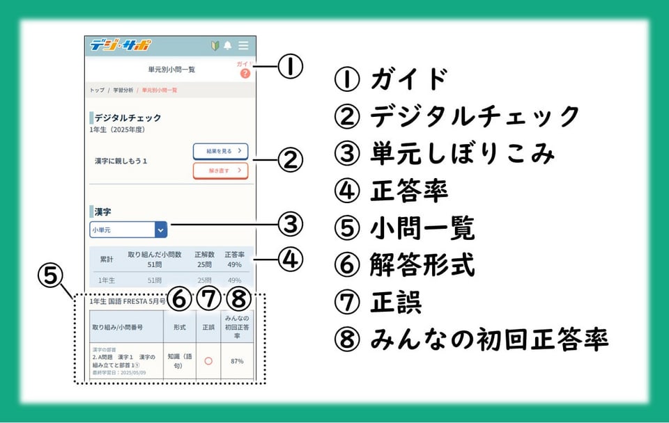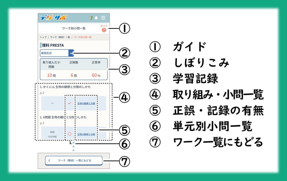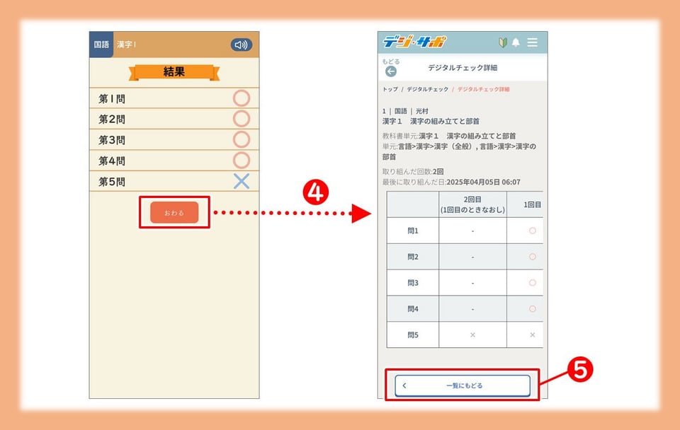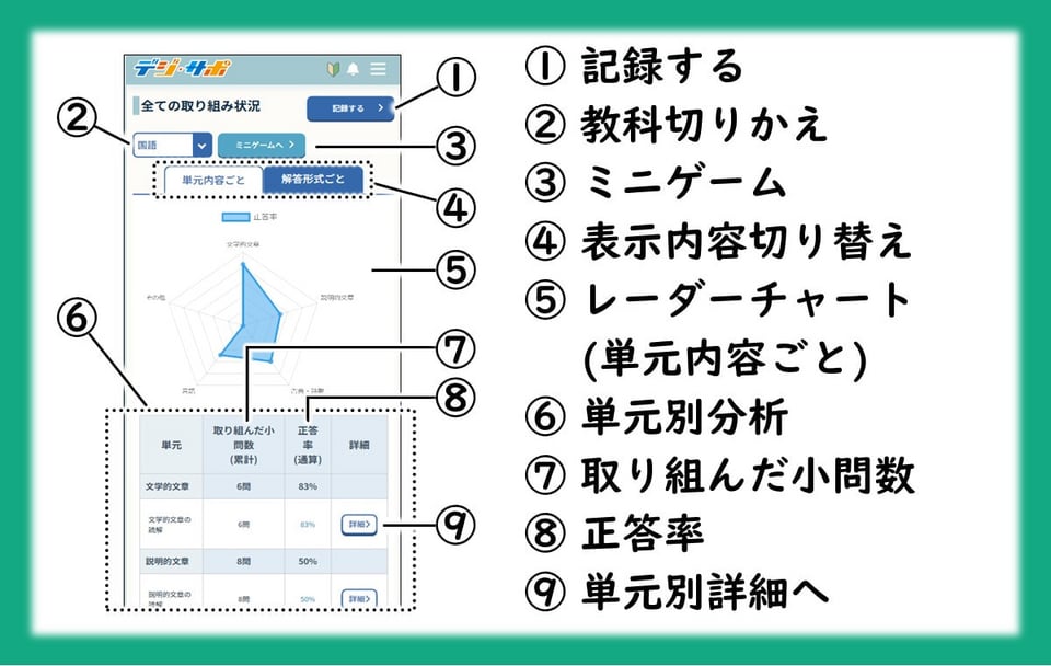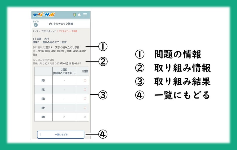 タップすると、「学習記録」の単元別小問一覧の画面に移動します。