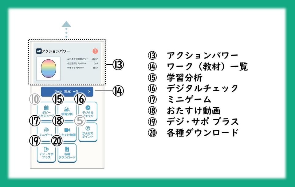 がんばりポイントは、「今月のパスワード」を入力したり、AP(アクションパワー)を貯めたりすることで獲得することができます。