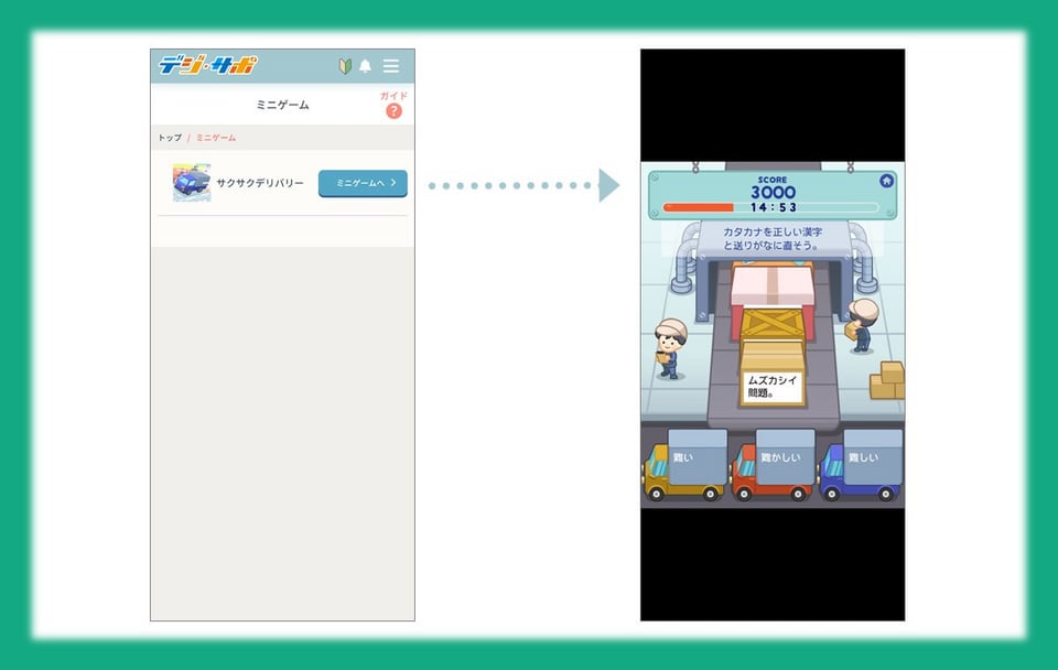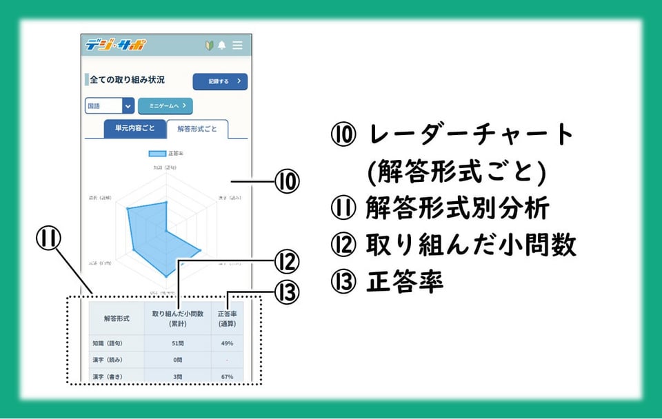 学習記録の結果をもとに、ゲームの問題が変わったり、キャラクターの能力が変わったりするミニゲームもあります。