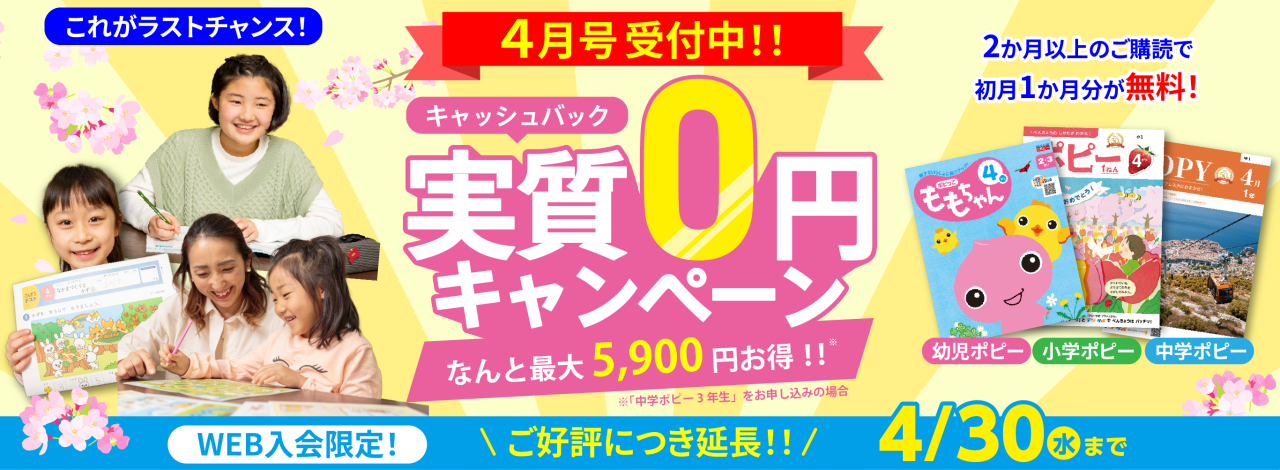 【対象教材】幼児ポピー/小学ポピー/中学ポピー ※新規入会に限る
