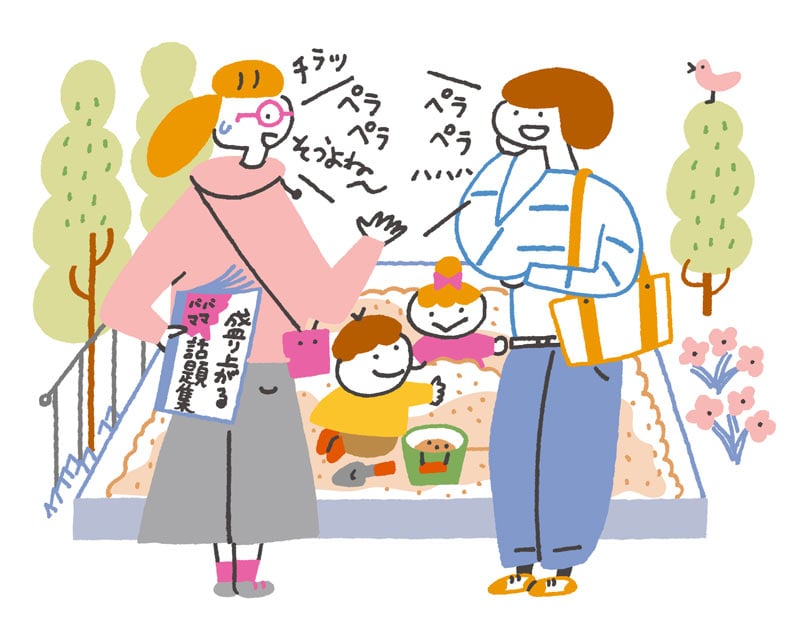 公園などのあそび場、子ども連れでも行きやすいグルメスポット、地域のお祭りなどの話題も盛り上がります。子育てをする上で、「これは便利だった!」「子どもが喜んだ!」「これは家事の時短になる!」などの話も、お互い興味があるところでしょう。情報を知らせることが目的ではないので、気負って調べるのではなく、実際に行ってみてよかったところや便利だったものなどを気軽にシェアできるといいですね。