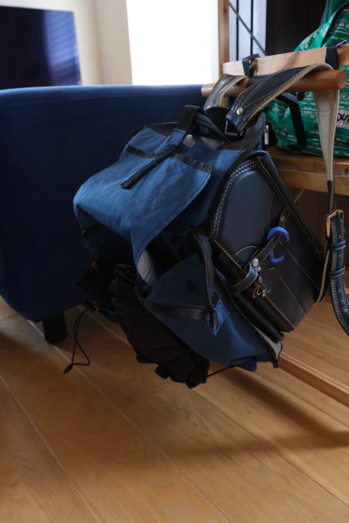 収納扉や棚の側面などに貼り付けるだけで、ランドセル置き場のできあがり。次の日に必ず持っていかなければいけないモノなどをランドセルの上にあえてかぶせるように掛けておくと、忘れ物防止にもつながります。