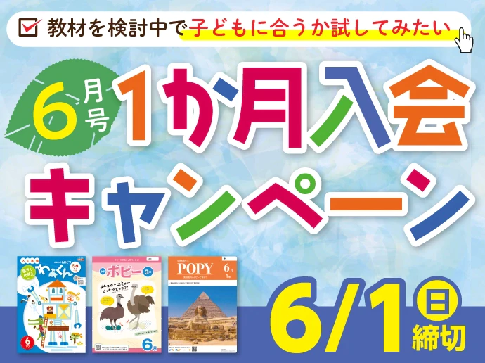 抜粋版のおためし見本ではなく「実際に1か月分の教材を使って内容を確かめたい」という方には絶好のチャンス!お見逃しなく!
