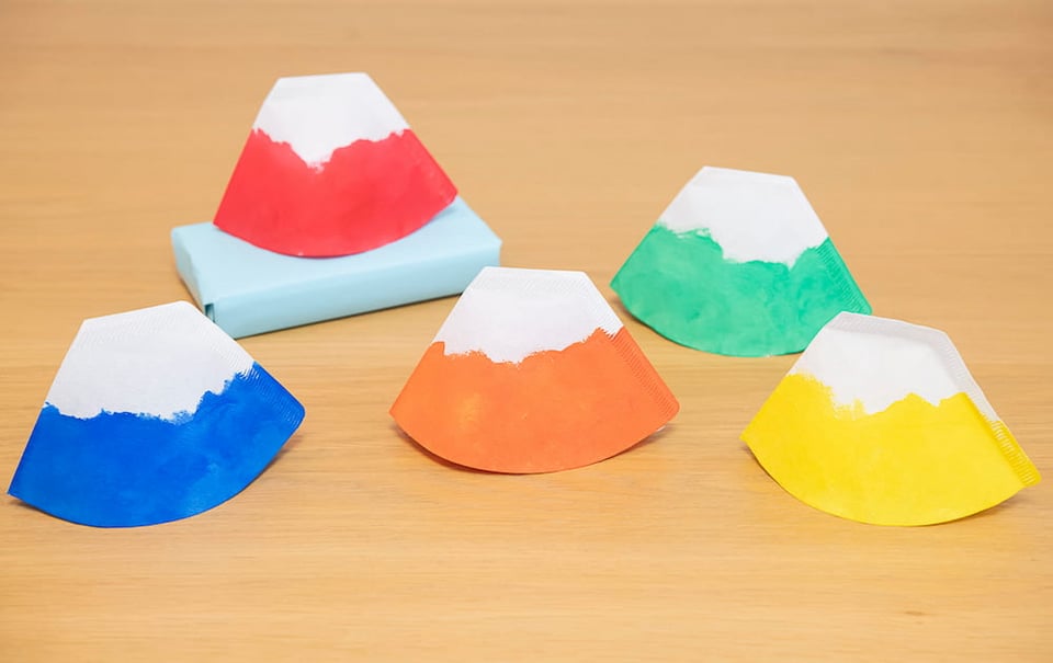 ・好きな色で塗って、レインボー富士山に!空き箱などで段差をつけて飾っても雰囲気が出ます。