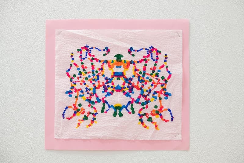 半分に折ったキッチンペーパーの裏までインクが写るように、染みる様子を観察しながらじっくりと点を打つようにすると、綺麗に写ります。