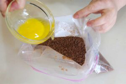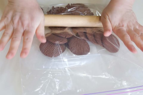1.ココアクッキーをチャック付きポリ袋などに入れて細かく砕く。