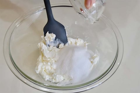 4.ボウルにクリームチーズと砂糖を入れ、混ぜる。