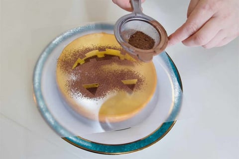かぼちゃの皮やココアでデコレーションをしたら完成!