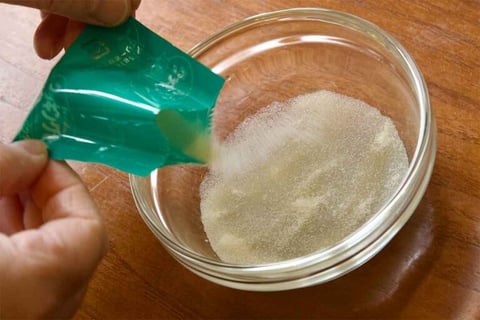 ★Point:粉ゼラチンに水をかけるとダマっぽく溶け残るので注意。水の上に粉ゼラチンをふりかけましょう。