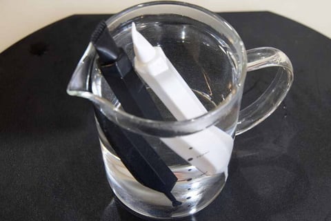 その間にチョコペン(白・黒)を40~50度ほどのお湯につけ、柔らかくしておく。