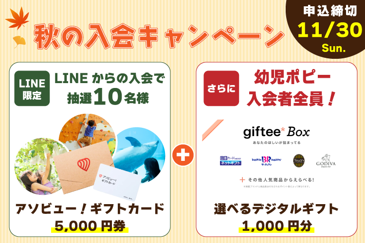 さらに!幼児ポピー入会者にはもれなく「選べるデジタルギフト1,000円分」をプレゼント✨